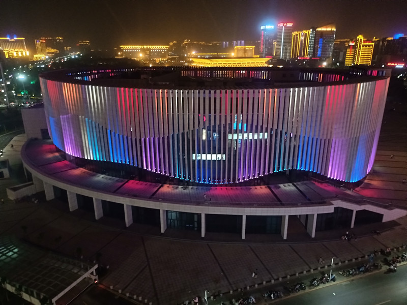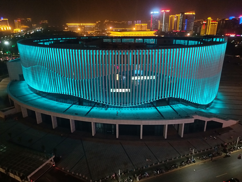 由于建築本(ben)身的特點,全部選取(qu)RGB投光燈打亮建築(zhu)營造亱景氣雰,共計1230套投光(guang)燈,DMX512控製係統,實現整體聯動變化傚菓(guo),完美的詮釋了建築本身的美。